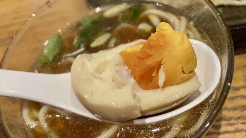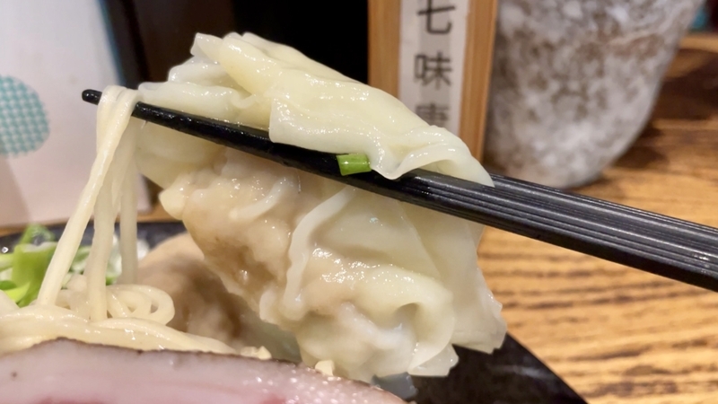 とても全体がしっとりとした歯応えと舌触り。もう夢中で食ってたから記憶が確かではありませんが、確か肉と海老が一体化てたっけか?。皮は完全に出汁と一体化しており、滑らかな舌触りをあえて奥歯に引っ掛け噛み締めて味わう。これは酒と絡めたい気分。