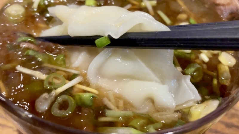 <ワンタン> 確か豚挽肉&海老すり身?肉餡ふわふわ皮つるつるで食感が実に軽やか!