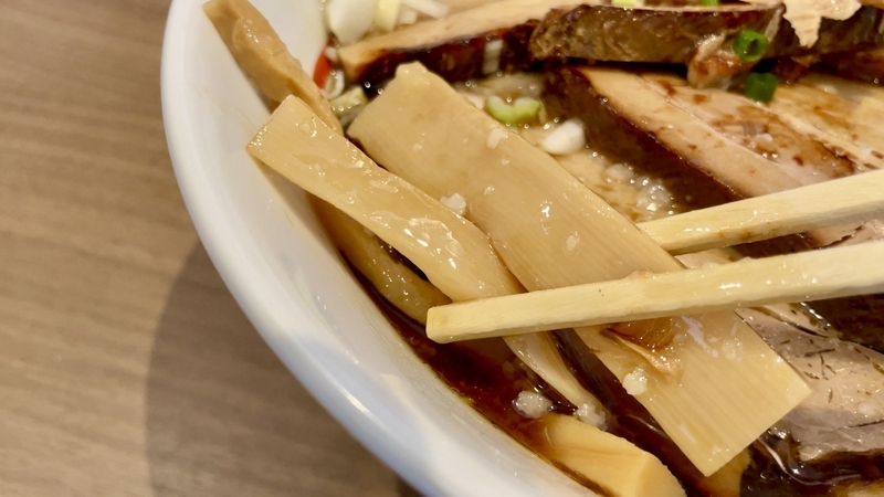 <メンマ> 薄味なのをマー油豚骨出汁と麺に絡めてガッツリ楽しもう!フレッシュそのもの!