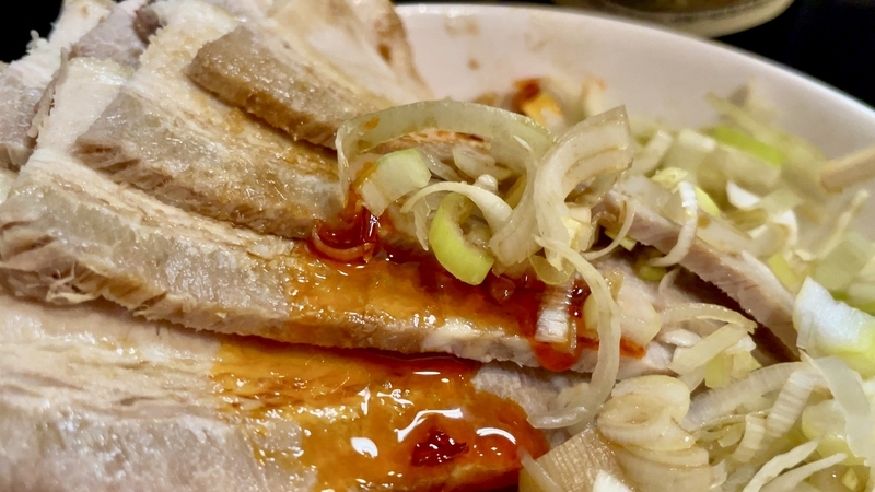 確か雨の日サービスで1枚追加してくれるのだが、このタイミングは雨がまだ降ってなかった。それでもデフォで2枚と半分の立派なチャーシューがのります。直前にチャーシュー皿食ったばかりだが、やはり肉があると嬉しいね。