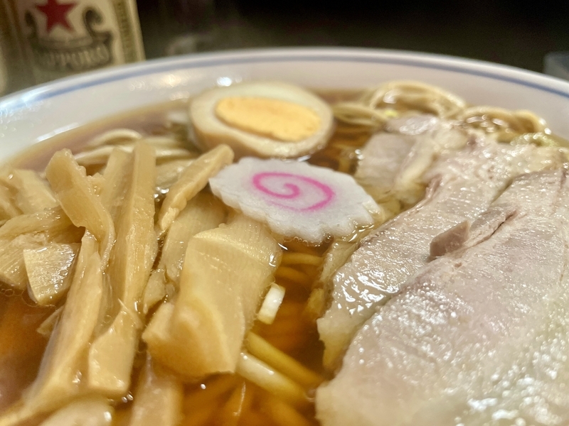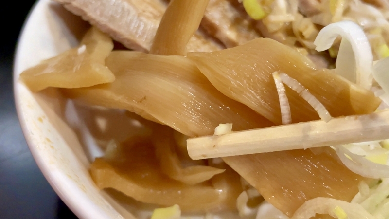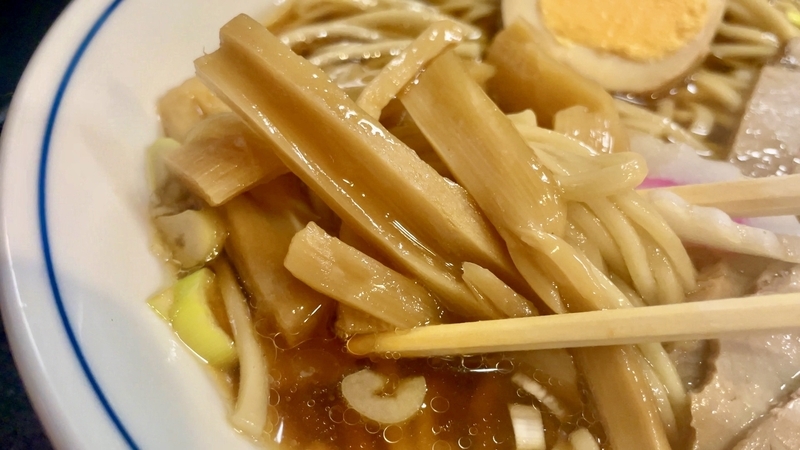 温かみのある汁と麺の上にのると、少しまた温度と出汁の一体感があって旨し!。温まるとメンマの素地感がしっかりと生まれ、また繊維質が柔らかくなり始めるので、歯応えも軽快により一層と感じます。なのでこれも皿で食らうのとはまた印象が違います。