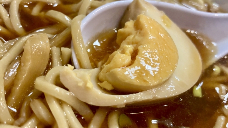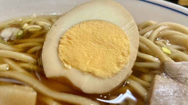 <茹で卵> 懐かしのハードボイルド!白身は軽くタレに染まり微妙な味玉風な演出!