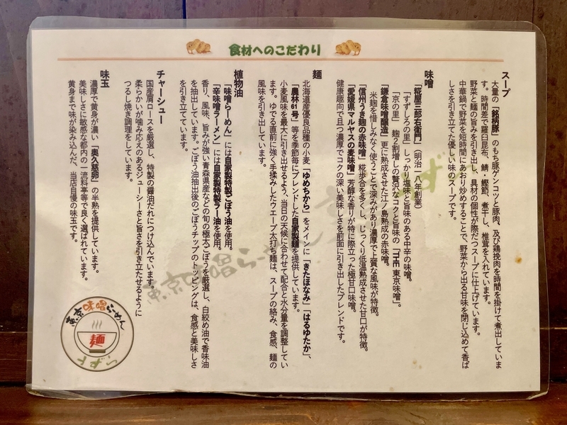 以前、味噌が変わったのが気が付かなかったので改めて確認(爆)。店側の蘊蓄によると4種の味噌ブレンド。