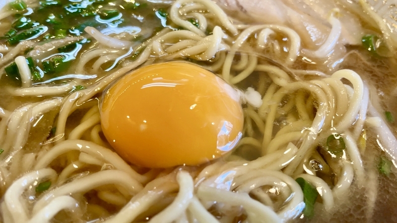 <生卵> やっぱり生卵を乗せてしまう?豚骨醤油出汁の塩気と調和し肉厚な旨さへと!
