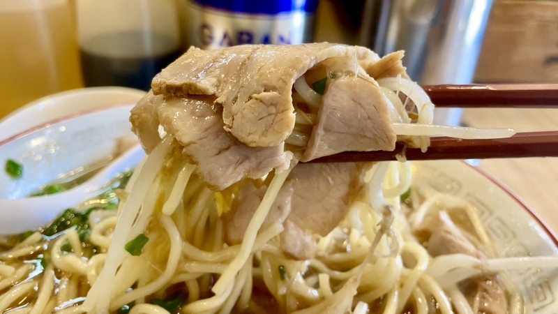 やや薄いチャーシュー。なので頼りないと思うこと勿れ。これを重ねて食らうのが旨いのです!楽しいのです!。ここは京都系をしっかり継承感じます。