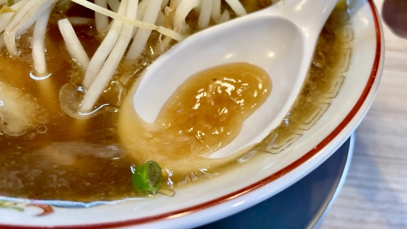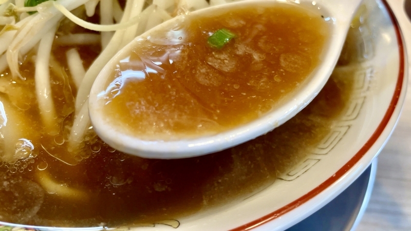 <出汁> 野趣を漂わせる豚骨!程よい塩気の輪郭に豚エキスの重厚感!モヤシの優しさが溶ける
