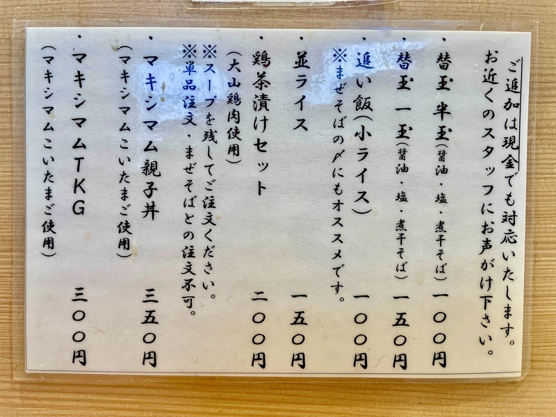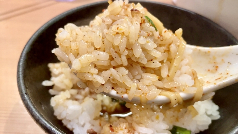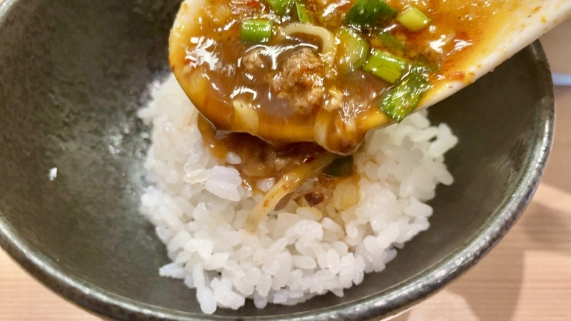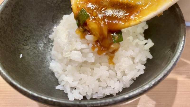 挽肉を噛みしめているうちに、どうしても白飯が欲しくなる。替玉より今回はライスとさせてもらいましょう。最近食いすぎだからサイズは小。ま、小と言うより追い飯サイズ。この出汁をかけると無限大に食ってしまいそうなほど旨し!。