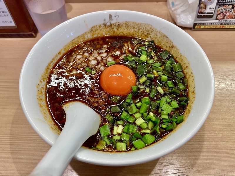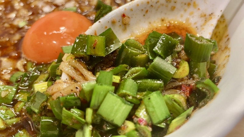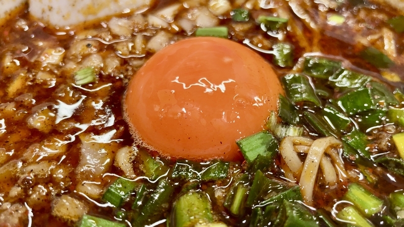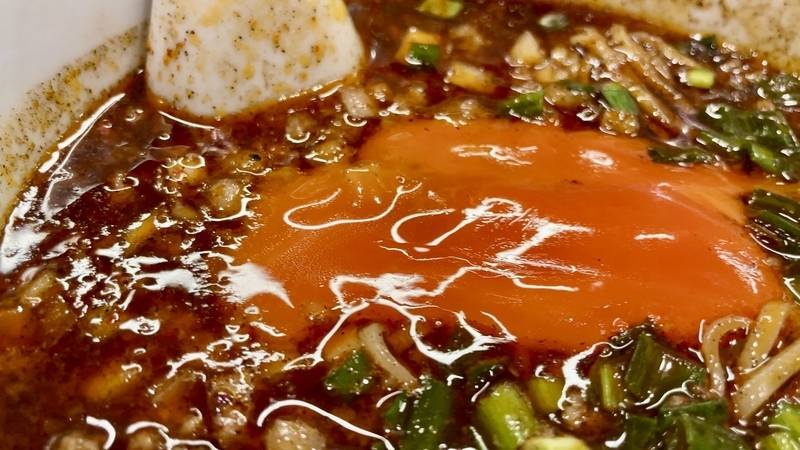配膳の台湾拉麺みたいと感じました。店によっては韮の他に大蒜の芽があったりモヤシがあったりしましょうが、生卵黄がのるのはイメージなく、台湾拉麺「風」と勝手に定義です。