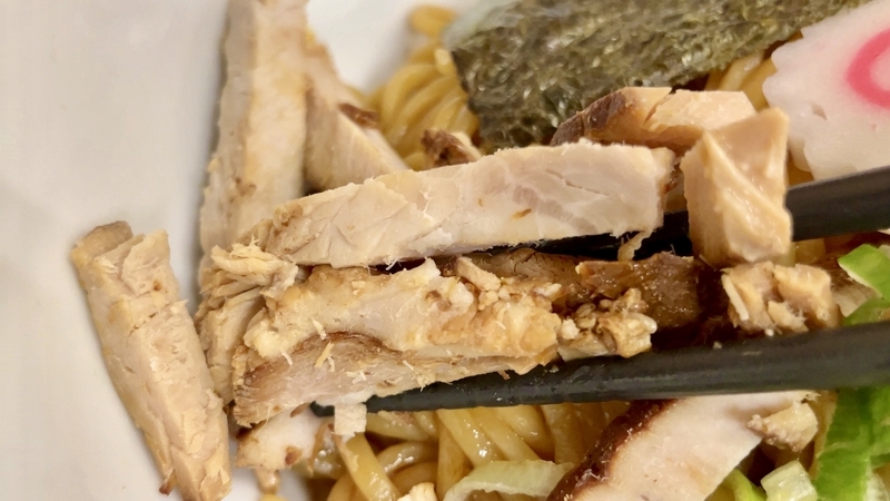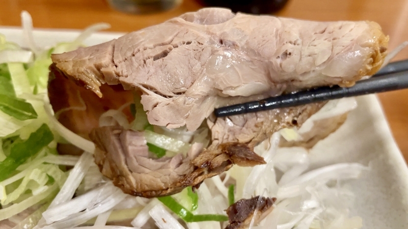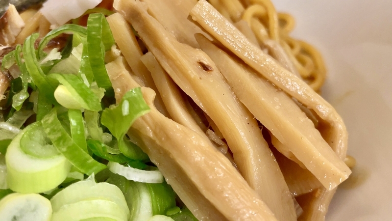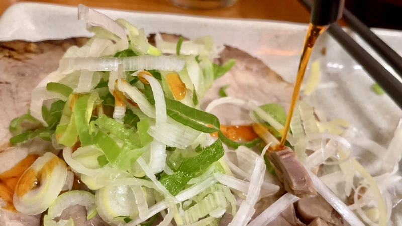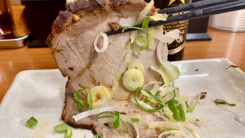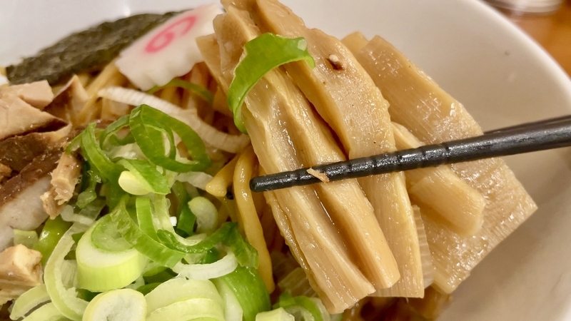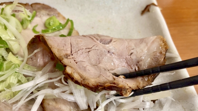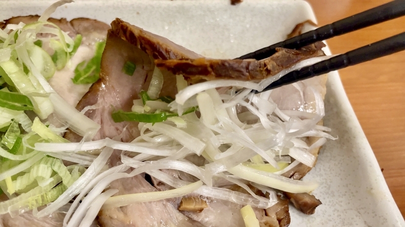ちなみにサービスでチャーシューとメンマの刻みに、少し辛味を利かせたのが提供されます。非常に酒に合うばかりでなく、混ぜそば系にも絶妙に合いそうな旨さです。
