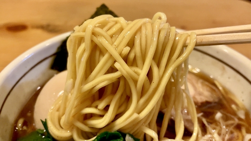 一方で熱ダレにも強そう。中盤になるとゆっくりとしなりだすので、海苔や肉などと絡めて一緒に味わうのも一興です。ズボッと啜ると喉越しに感じる麺のシルエット感を如実に伝えるようです。
