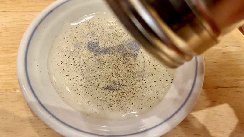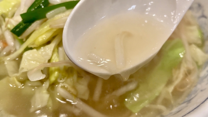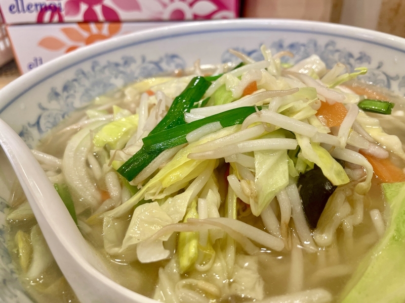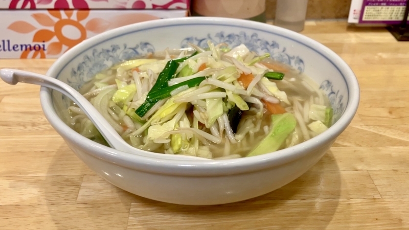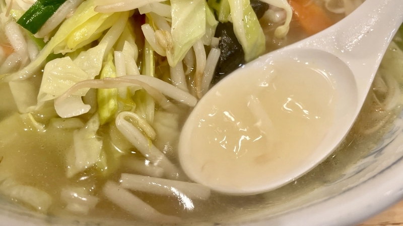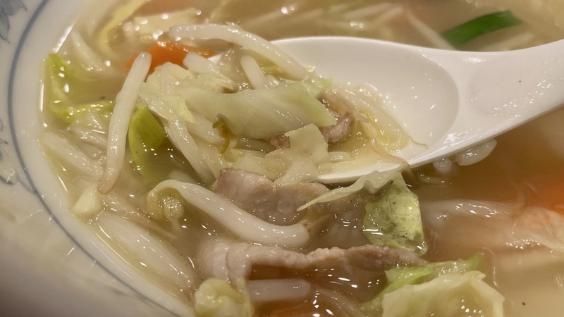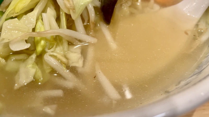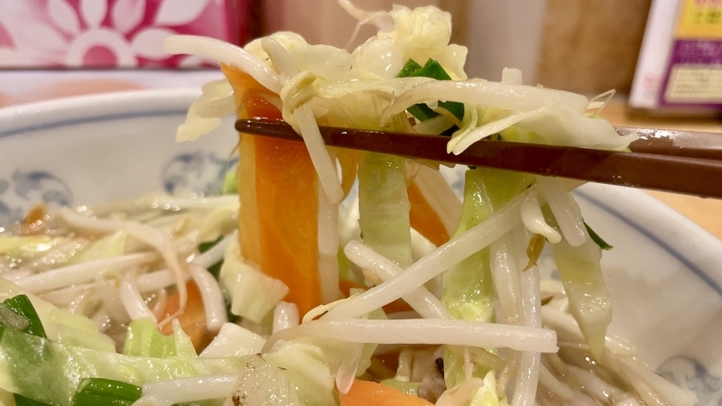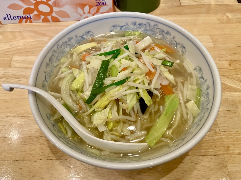 さらに野菜いための汁が混じるから一層と円やかさと優しさが染み入る展開。後半がうまい。野菜いための香ばしさより、野菜のエキスが出汁にじわじわと溶けいったところが美味しいと感じます。なので今回は、コショウとか辣油とか一切なしのデフォルトで堪能いたしました。