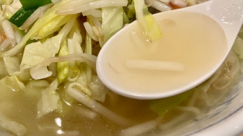 画像ではわかりにくいが、器が大きいのでインパクト感薄いが、実は結構しっかりした内容です。見るからにあっさり系の塩出汁に、野菜炒めが結構入っているじゃないか。これぞタンメン!野菜をケチると一気にトーンダウンしてしまうのもタンメン!。ツボをおさえた感じです。このご時世でこれで税込610円ならありがたさすら覚えますよ。