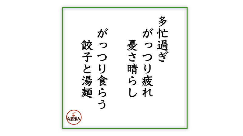 ・・・と言う感動の嵐!。中華屋イメージやエリアでは、他社競合には及ばぬけれで知る人ぞ知るナイスな鎖系餃子屋。中華屋発祥なのだけどね。埼玉と多摩に住まう人なら一度は目にしたはず。飲める雰囲気もあるので、個人的には今後通う頻度がアップするかと!。昨今鎖系中華はとても頑張ってると再認識です。激しくオススメ!旨し!なので・・・とっとと最後に詠って締めたいと思います!。